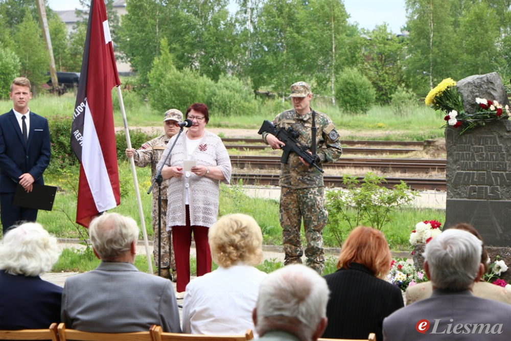 Godinot visus deportētos – gan tos, kuri izdzīvoja un atgriezās, gan tos, kuri bija nolemti bada un ciešanu nāvei, Valmierā pie dzelzceļa stacijas piektdien notika komunistiskā genocīda upuru piemiņas un atceres brīdis. Sanākušos uzrunāja Valmieras pilsētas pašvaldības domes priekšsēdētājs Jānis Baiks, sakot: «Savas dzīves melnākās dienas mums gribas ātrāk aizmirst un domāt tikai par gaišām lietām. Ir pagājuši 78 gadi, kopš 1941. gada 14. jūnijā lopu vagonos tika izsūtīti civiliedzīvotāji, un Latvijas vēsturē šīs rētas ir tik dziļas, ka nav iespējams tās aizmirst, jo mērķis bija sagraut ticību savai zemei, pazemot un padarīt visus vājus.» Jānis Baiks aicināja ne tikai atcerēties un pieminēt šos datumus, bet arī domāt par nākotni, būt atbildīgiem par savu brīvību un pārdomāt, kā to saglabāt.