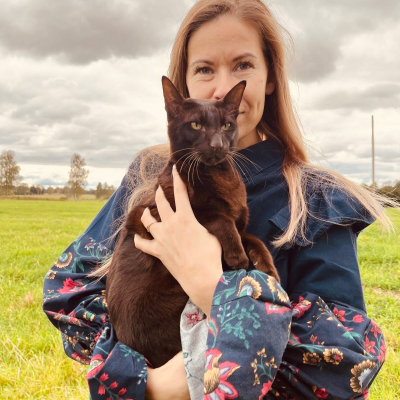 «Dzīvojam privātmājā Brenguļos, un mūsu orientālais kaķītis Semirs, pēc dabas mednieks, brīvi staigā apkārtnē un nes mājās dāvanas – peles, putniņus, pagalmā zalktīšus, meitai apēdis dažus kāmīšus, kad bija jauns, pat līda kokā putnu būros – ar savām garajām kājām var augstu uzlēkt.