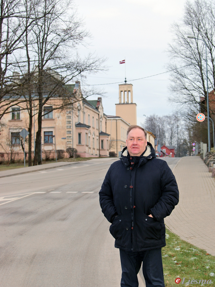 AR SAIMNIEKA SKATU. Gunti Gladkinu esam intervējuši neskaitāmas reizes, bet pirmo reizi pēc intervijas viņš pats pieteicās mūs pavadīt pa Rūjienu, lai parādītu, kas pilsētas 100. jubilejas gadā paveikts un kas vēl darāms. Ārijas Romanovskas foto