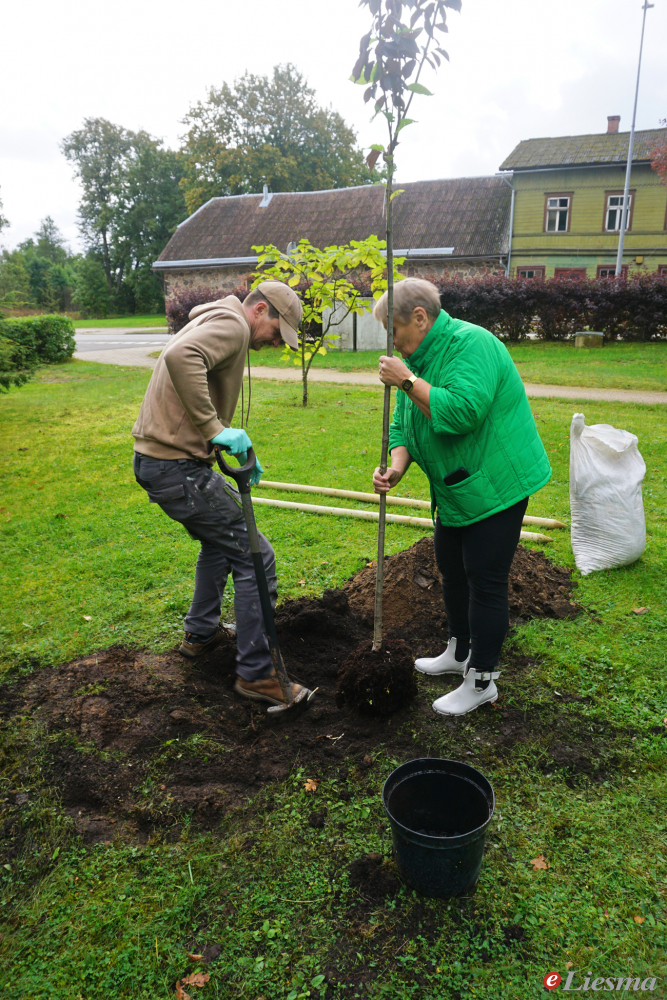 Vispirms ar īsu apsveikumu pasākumu ievadīja Strenču apvienības vadītājs Jānis Pētersons, tad sīkāk par galveno stādāmo materiālu – sešiem sakuras kociņiem – pastāstīja Latvijas valsts mežu Strenču kokaudzētavas speciāliste Iveta Ence.