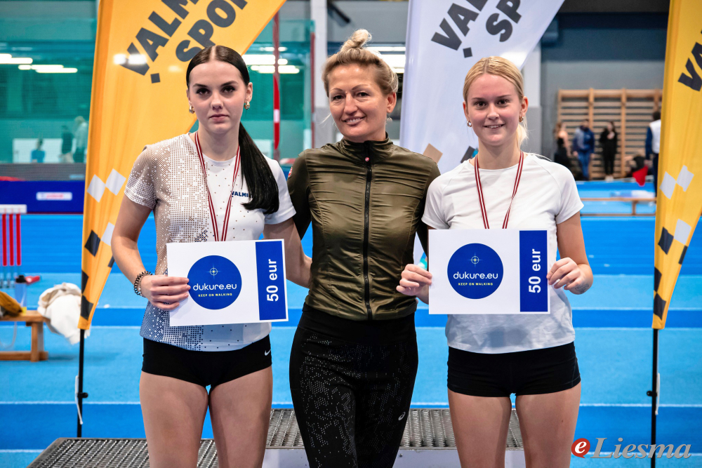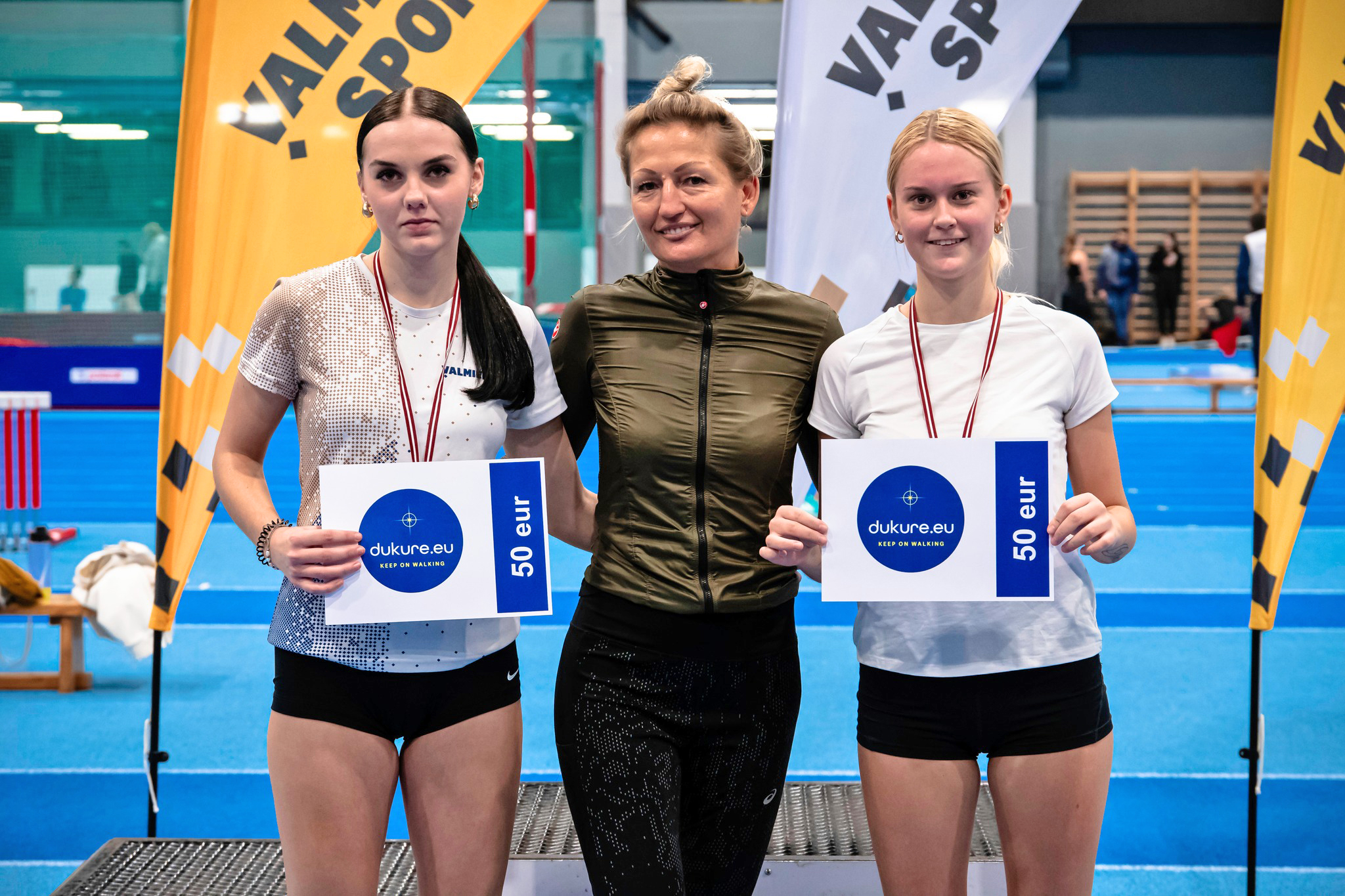 SOĻOTĀJAS Karīna Ņikuļina (no kreisās) un Ketrina Kuzņecova (no labās) ar Sidnejas un Pekinas Olimpisko spēļu dalībnieci Jolantu Dukuri. Foto no Valmieras Sporta skolas galerijas vietnē Facebook