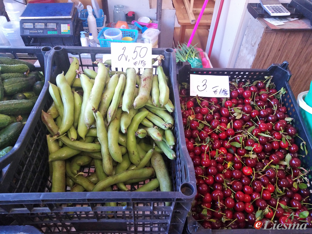 Iveta ir tirgotāja, kura pati neaudzē, bet tirgo Latvijā audzētos ķiršus un cūku pupas. «Šie gardumi tiek audzēti Valmieras pagastā.» Cūku pupu pirmā raža bijusi gatava pirms nedēļas. Salīdzinot šo ražu ar iepriekšējo vasaru, esot līdzīgi. Savukārt ķiršu šogad esot krietni vairāk nekā pagājušajā gadā. Šosestdien arī šos gardumus varēs nopirkt tirgus mājā. Piedāvājumā ir arī jaunie ķiploki, tomāti, dažādi pašgatavoti veselīgi sīrupi (jāņogu, zemeņu, rabarberu), burciņās pašgatavoti mārrutki ar piedevām un adžika, arī Latvijā audzētas vidējās zemenes. Iveta pasola: «Augustā tirgosim vēlās zemenes.»