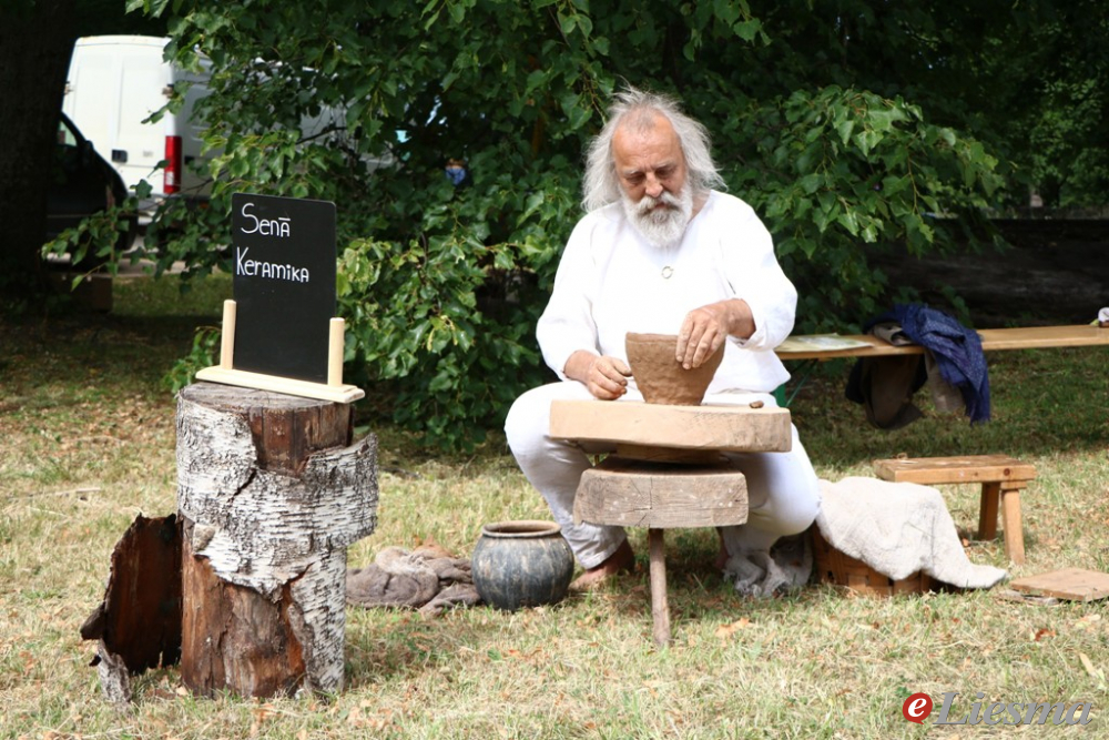 Pie rotkaļa Andreja Jakubovska varēja izveidot personalizētu lentveida aproci vai spirāles tipa gredzenu. Rotas ir mūsdienīgas, tās labi papildinās gan valkātājas Līgosvētku tērpu, gan ikdienas apģērbu. Prasmes kalējs ieguvis no tēva un rotas kaļ jau piecus gadus. Mazāko vidū interesi raisīja loka šaušana mērķī. Savukārt darbnīcas «Senā keramika» apmeklētāji varēja vērot, kā top podi ēdiena gatavošanai ugunskurā. Šos traukus veido no māla, kas sajaukts ar zvirgzdiem, lai tos varētu likt ugunskurā.  Zvirgzdu iegūšanas process ir visai sarežģīts — granīta akmeni izdedzina ugunī, vēlāk to sadauza mazākos gabaliņos un saberž. Pirms pievienošanas mālam no tā izsijā putekļus. Tas mālu padara elastīgāku ugunī un paildzina trauku kalpošanu.