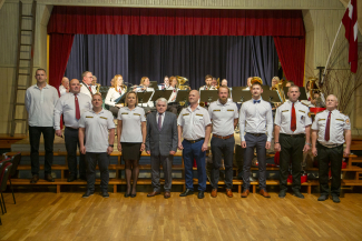 Sekojot sarkanbaltsarkanajam karogam, svinīgā marša pavadībā Rencēnu kultūras nama zālē iesoļo Rencēnu brīvprātīgo ugunsdzēsēju komanda. Nostājušies goda vietā, jubilāri un viesi kopīgi nodzied Latvijas valsts himnu.