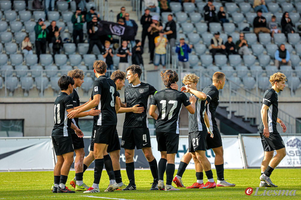 Bumba ķekaviešu vārtos, un Valmieras futbolisti var apsveikt cits citu. Un tā sešas reizes.