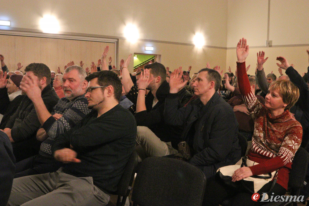 RETI KURŠ NO TRIKĀTIEŠIEM atbalstīja Valkas novada domes ieceri par Trikātas pagasta pievienošanu. Izņemot pāris cilvēkus, visi balsoja PRET. E. Kristiņas foto